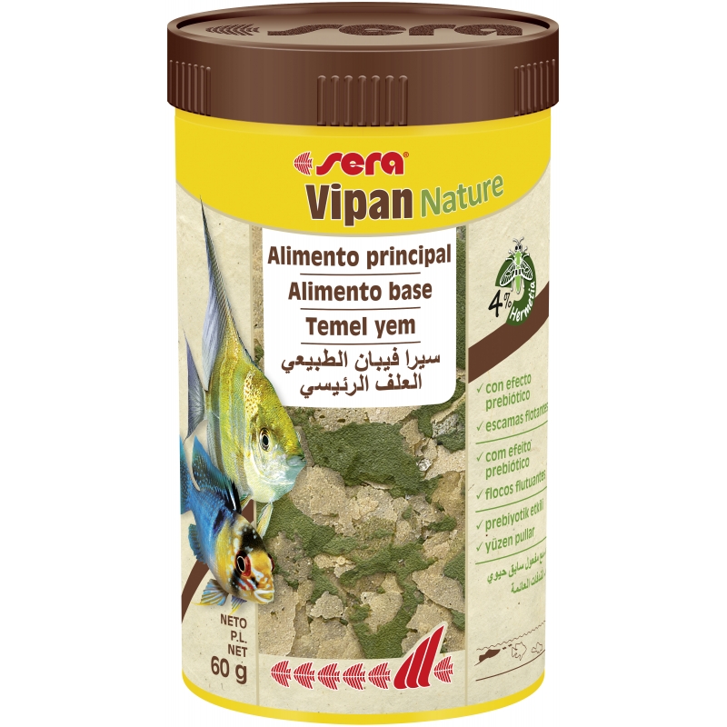 Sera Vipan es el alimento principal universal, que se compone de escamas cuidadosamente elaboradas, para todos los peces, en particular los que comen en la superficie del agua.